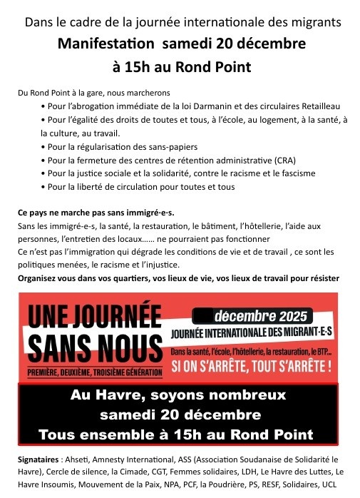 https://lh-luttes.info/event/manifestation-pour-la-journee-internationale-des-migrantsRond-Point, Rue Maréchal Joffre, Danton, Le Havre, Seine-Maritime, Normandie, France métropolitaine, 76600, France